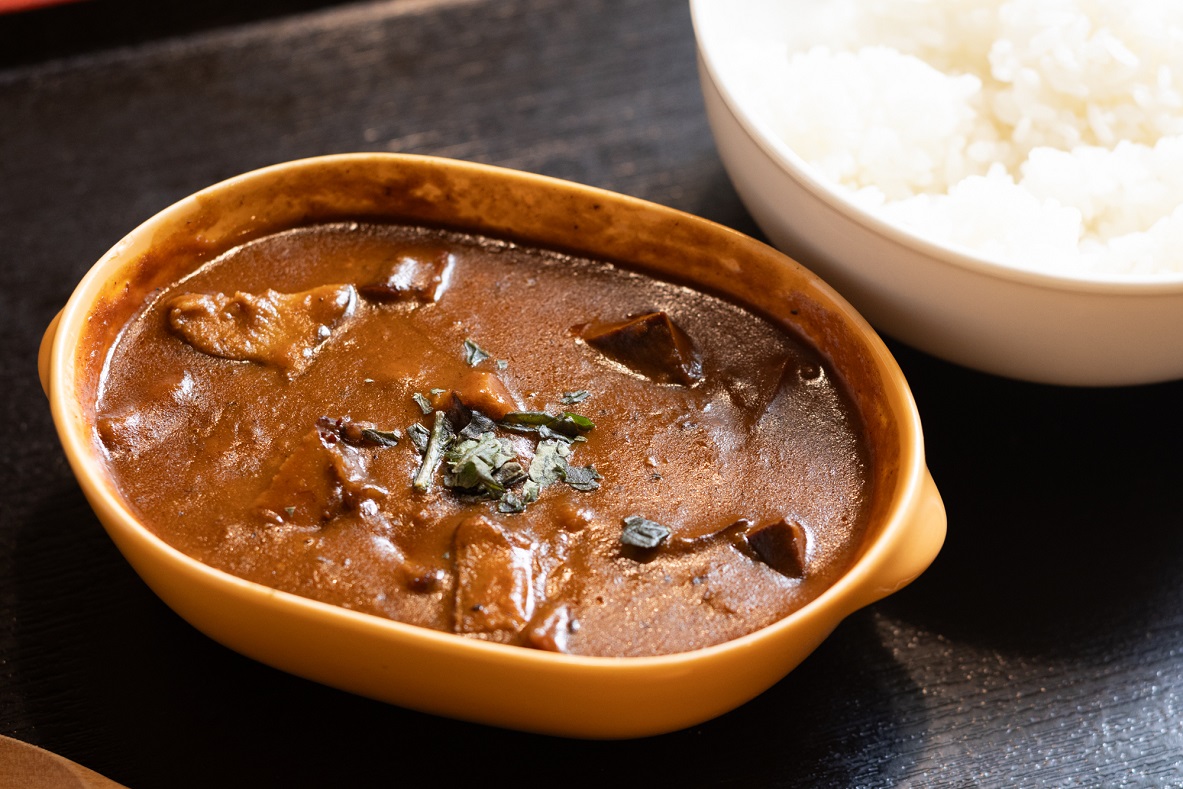 「肉シチューごはん」も思わず気になって注文してみました。見た目はビーフシチューのようですが、使っているのは豚のタン。じっくり煮込んだお肉はとろとろで、スプーンでほぐれるやわらかさです。濃厚なソースとご飯の相性も抜群で、「まさか蕎麦屋でこんなひと皿に出会えるとは」と驚かされます。