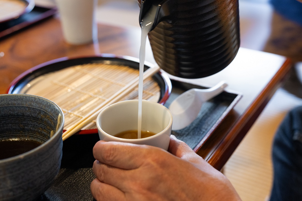 蕎麦を堪能する井伊湯種(いいゆだね)