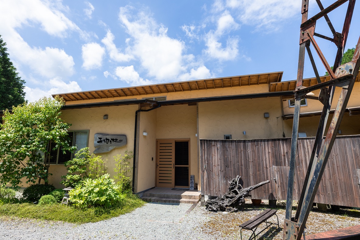さらにこの土地には、もうひとつの物語があります。「天狗之杜」の源泉は、30年以上前のバブル期に、女将さんのお父様が“温泉が出る”と信じて掘り当てたもの。「父が“ここは地面が高いから温泉が出るに違いない”と、調査もせずに掘ったんです。結果的に本当に湧き出たのですが、特に使いみちも考えていなかったようで、裸電球の下に簡素な浴槽を置いて“ご自由にどうぞ”と案内していた時代もありました」とのこと。このお話を聞いて、温泉マニアの井伊湯種は「その時に来たかった!」と思いました。しかし実際にはお湯が熱すぎて簡単には浸かれず、水道も引いていなかったため、一度は止めてしまったそうです。その後長い年月を経て、2010年に「天狗之杜」として再び命を吹き込まれました。
