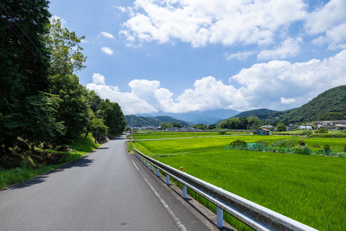 修善寺駅から車で約10分。中伊豆の山あい、田んぼの景色が広がるのどかな場所にある「天狗之杜(てんぐのもり)」。