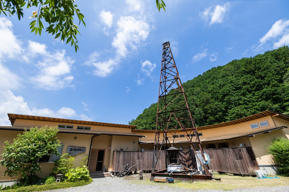 1,000mの深さから温泉を、そして200mの深さから天然水を汲み上げているという「天狗之杜」。