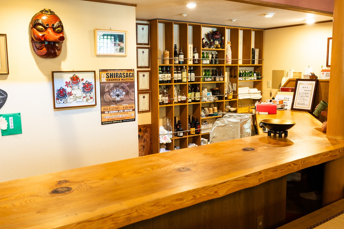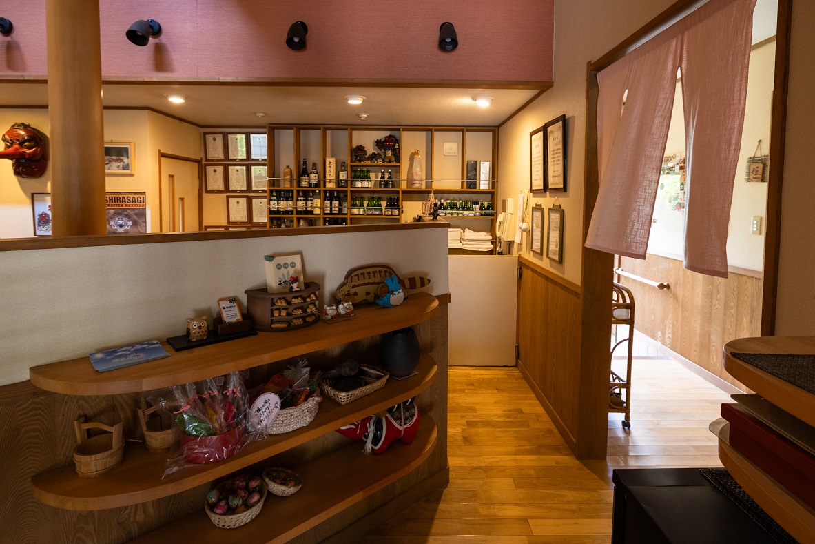 「今は昔話を知る人も減ってきていますが、ここがその伝承を受け継ぐ場所になれたらと思って、この名前をつけたんです。あとで地元の方に聞いたら、裏山に本当に“天狗の森”と呼ばれる場所があったそうで。つけるべくしてつけられた名前だったみたいです」と女将さん。食事処のあちこちに天狗をモチーフにした飾りが置かれ、穏やかな笑みを浮かべて訪れる人を見守っています。