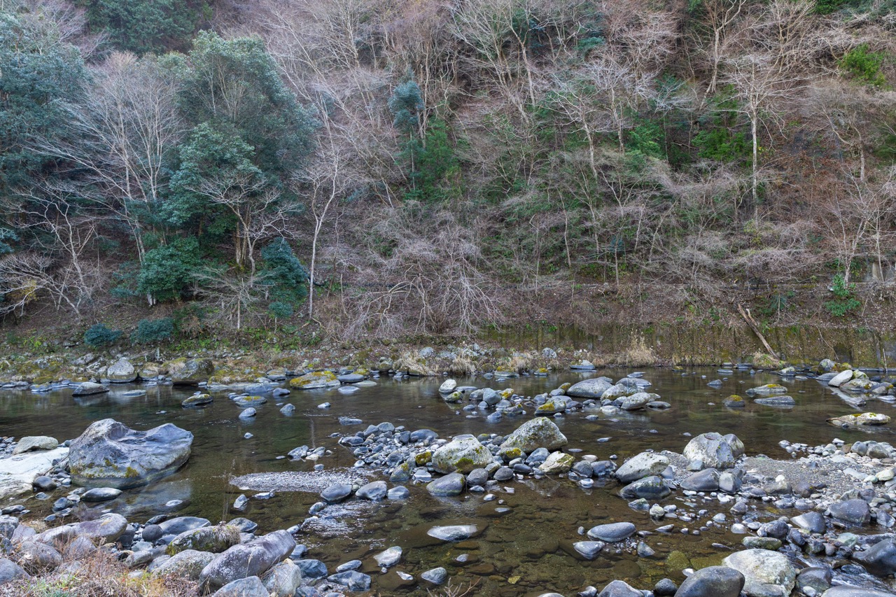 井上靖の小説『しろばんば』の舞台として知られる湯ヶ島で、狩野川の流れに寄り添うように佇む「河鹿の湯」。