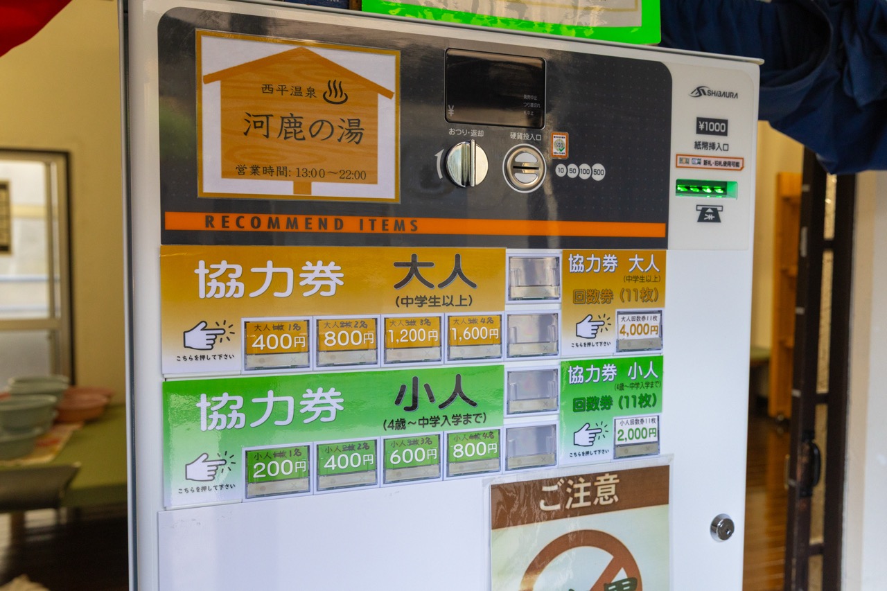 「河鹿の湯」は、基本的には地元住民(組合員)のための共同湯ですが、13:00〜22:00の時間帯は「協力券」を購入することで一般の方も利用することができます。