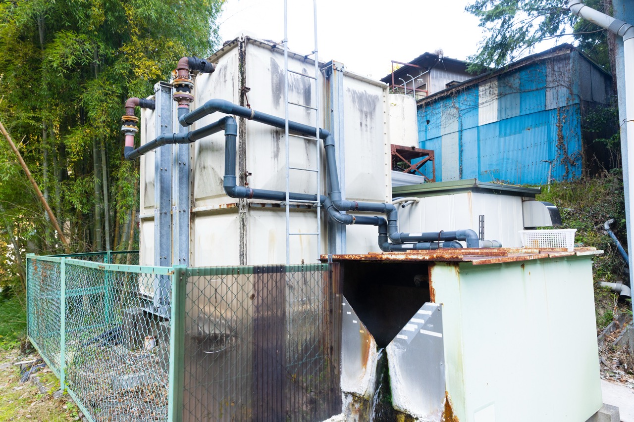 このタンクの向かいには、以前ご紹介した「伊豆市湯ヶ島 犬猫温泉」の跡地があります。